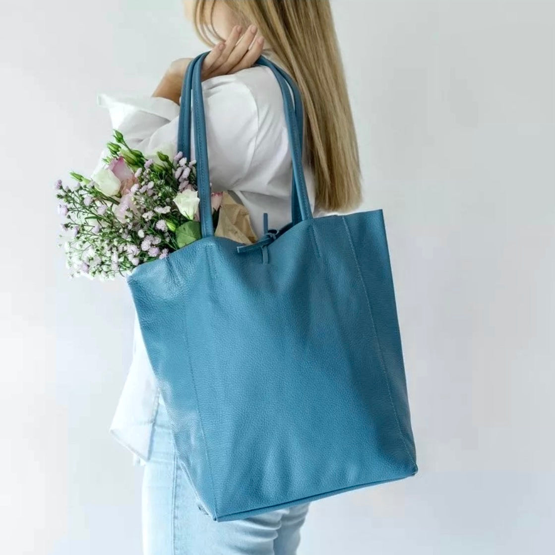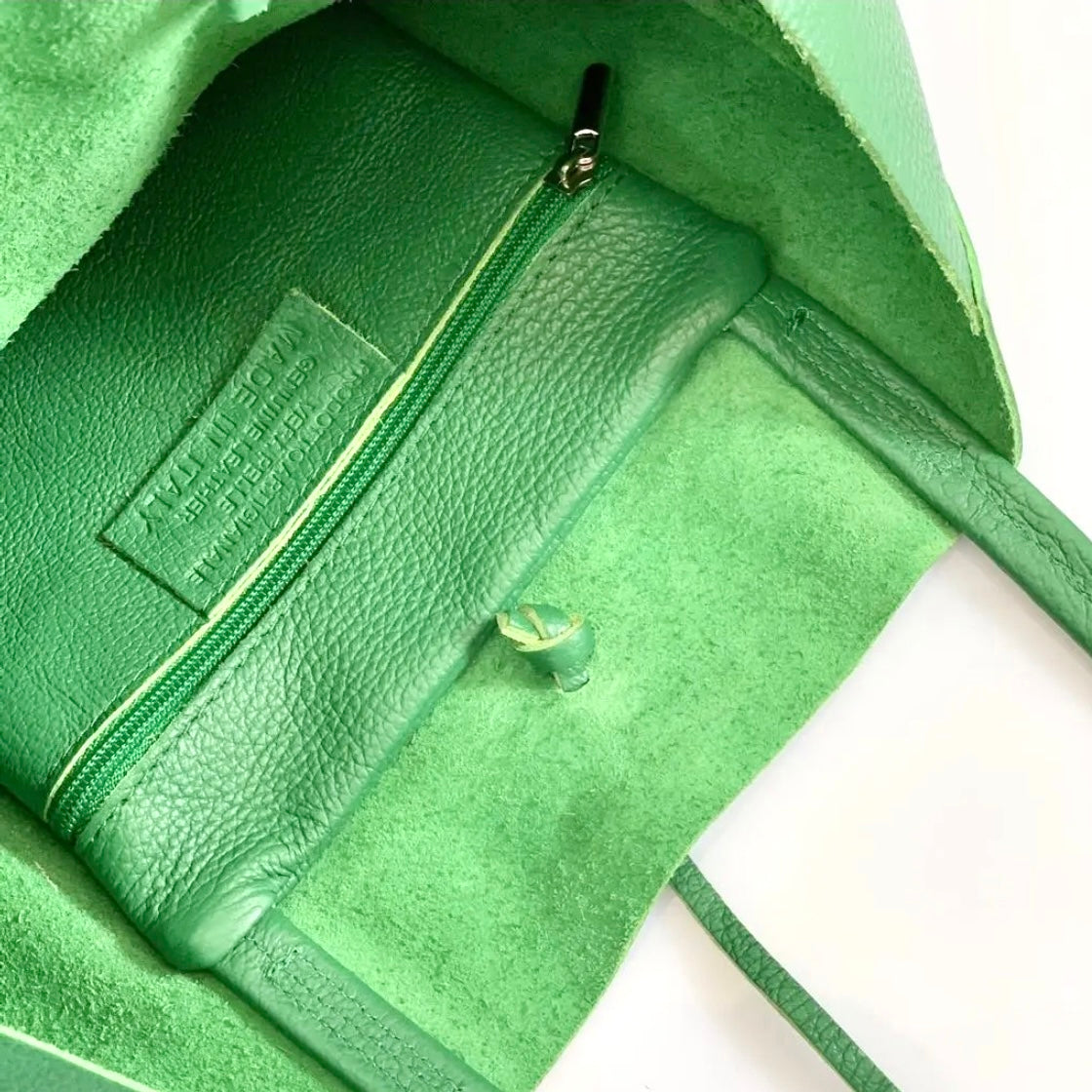 Borsa shopper grande e spaziosa, realizzata in Vera Pelle in Italia. È dotata di manico in Vera Pelle e chiusura a laccio.