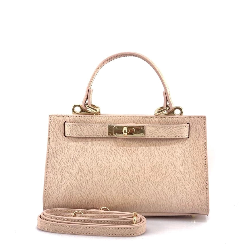 Dalle linee semplici ed eleganti la nostra DIANA, borsa realizzata in Vera Pelle in Italia. Presenta dettagli color oro e chiusura con un cinturino e rotellina. È dotata di tracolla in Vera Pelle regolabile e removibile.