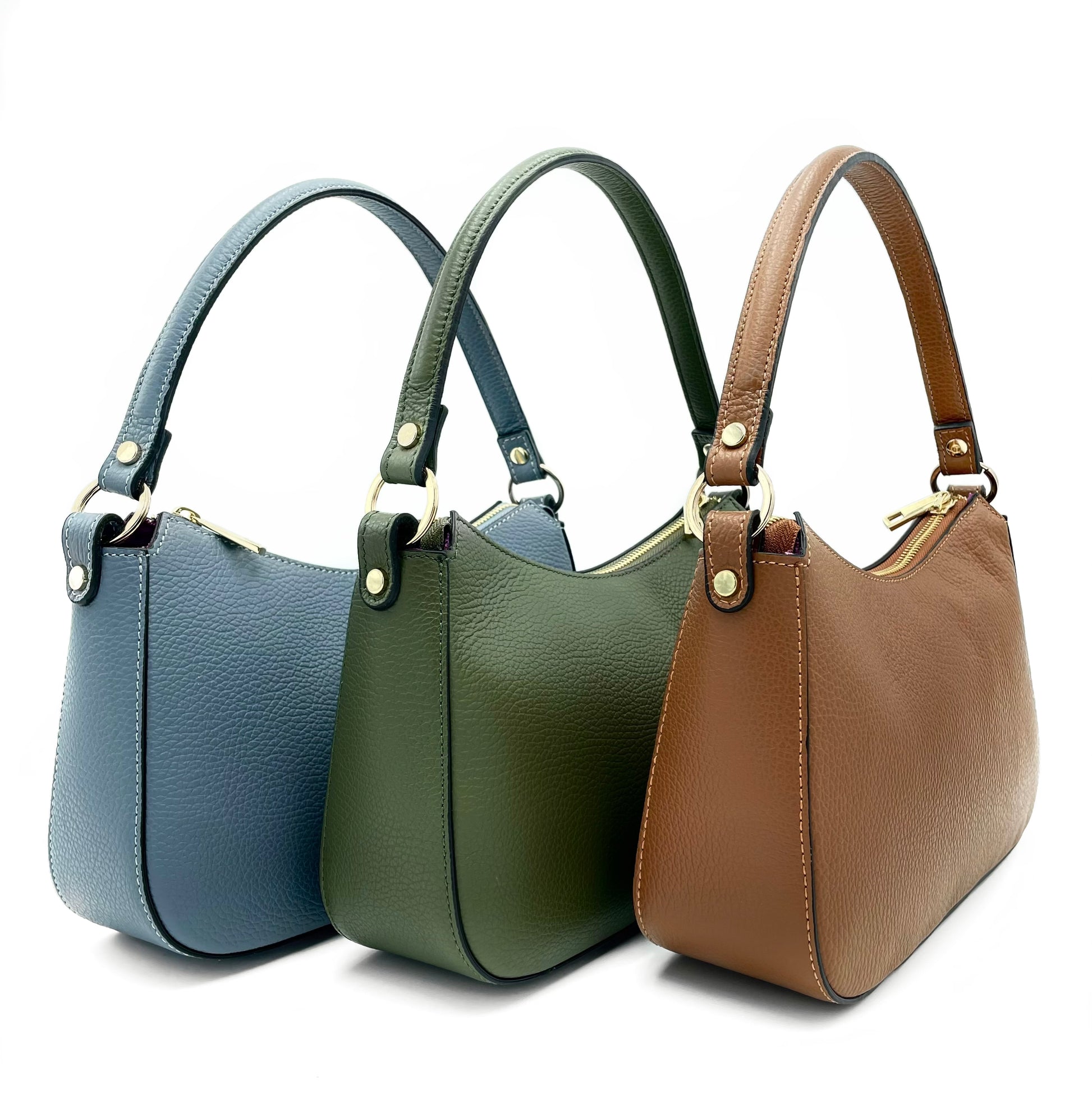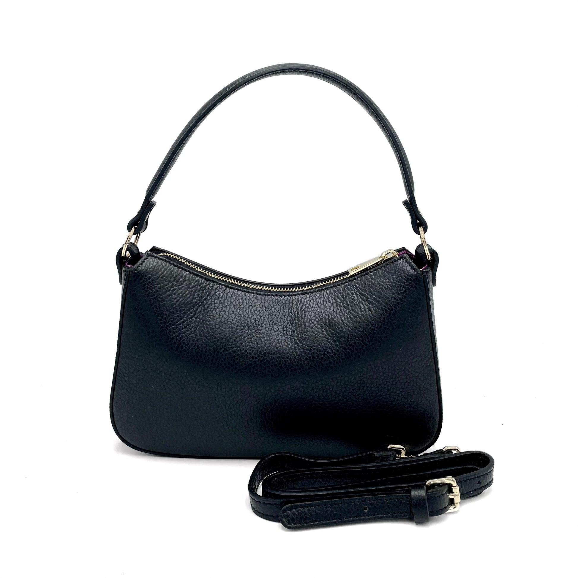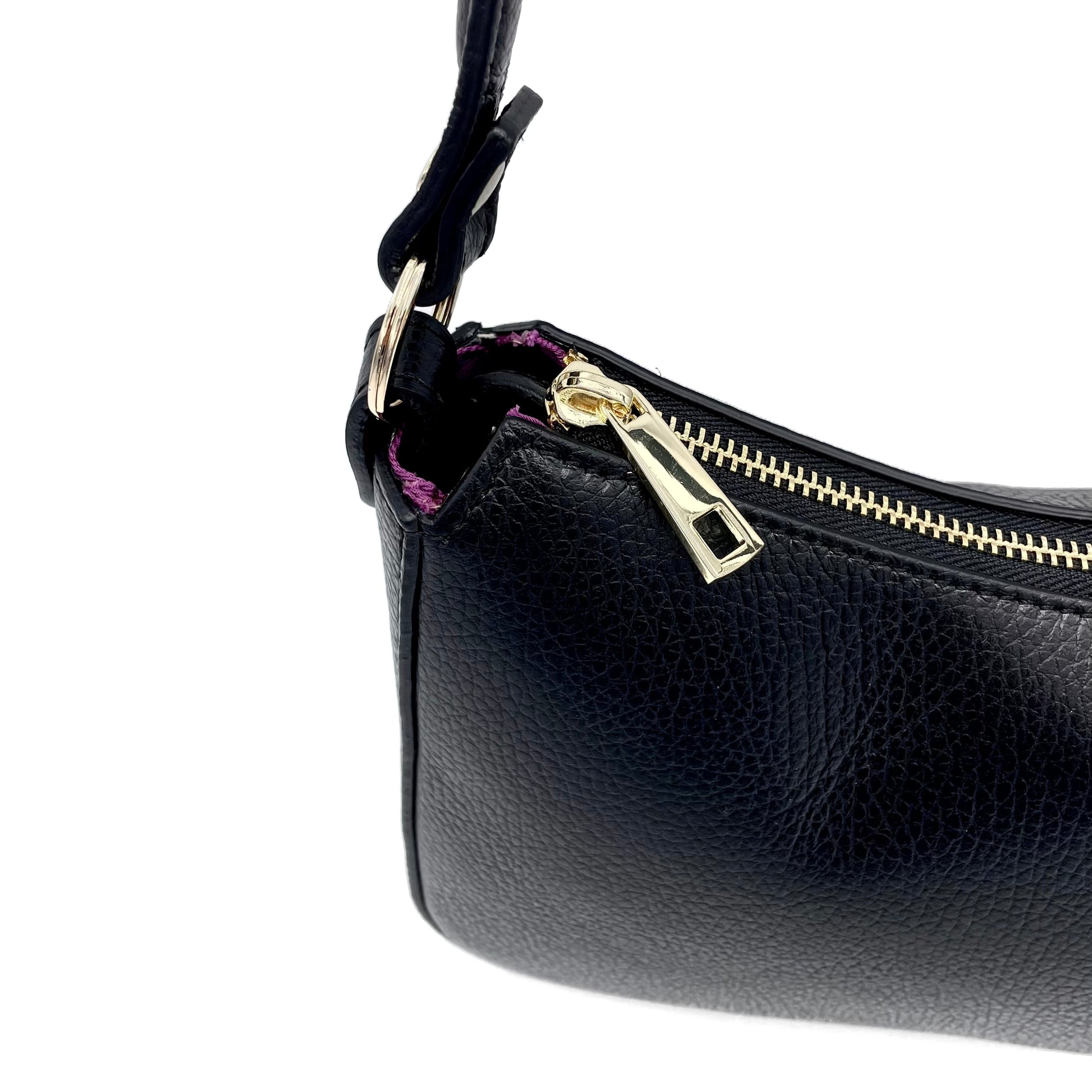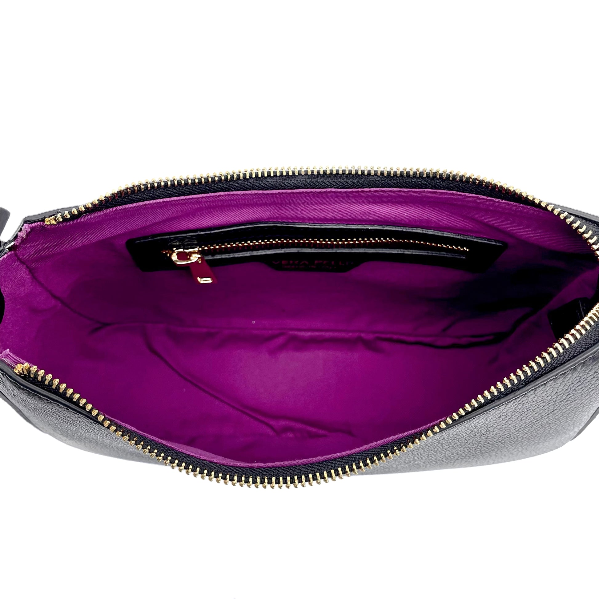 Semplice e lineare la nostra ELISA, borsetta realizzata in Vera Pelle in Italia. All’interno è completamente foderata in magenta e ha una piccola taschina con chiusura a zip. Dotata di tracolla regolabile e removibile.